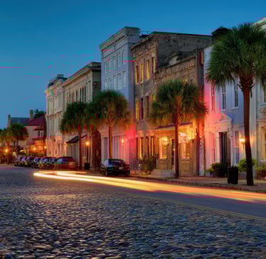 Historic Southern charm — pastel homes, cobblestone streets, and elegant piazzas
