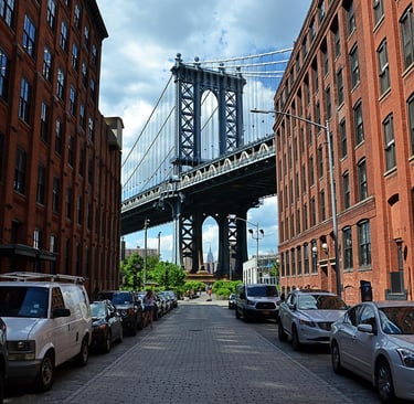 DUMBO (Down Under the Manhattan Bridge Overpass) is one of Brooklyn’s most photogenic areas — known for its cobblestone streets, art studios, riverfront views, and the famous postcard skyline shot of the Manhattan Bridge. It’s perfect for travelers who want design-focused boutique hotels with a creative Brooklyn atmosphere and unbeatable views.