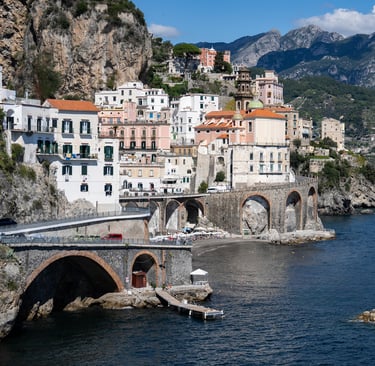 Its postcard-perfect pastel architecture, tranquil atmosphere, cliffside streets, and the serene Piazzetta Umberto I, one of the most charming squares on the Amalfi Coast.