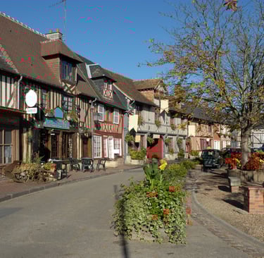 Nestled in the heart of Normandy’s Pays d’Auge region, Beuvron-en-Auge is one of France’s officially designated “Les Plus Beaux Villages de France.” It lies about 30 km east of Caen and just 15 km from the coastal resorts of Cabourg and Deauville.