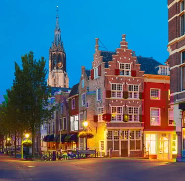 Delft is a historic canal city located in the province of South Holland, in the western Netherlands, between Rotterdam and The Hague. Often described as a miniature Amsterdam, it’s known for its charming canals, gabled houses, and artistic legacy. Delft’s compact old town offers a perfect blend of Dutch Golden Age beauty and modern vibrancy.