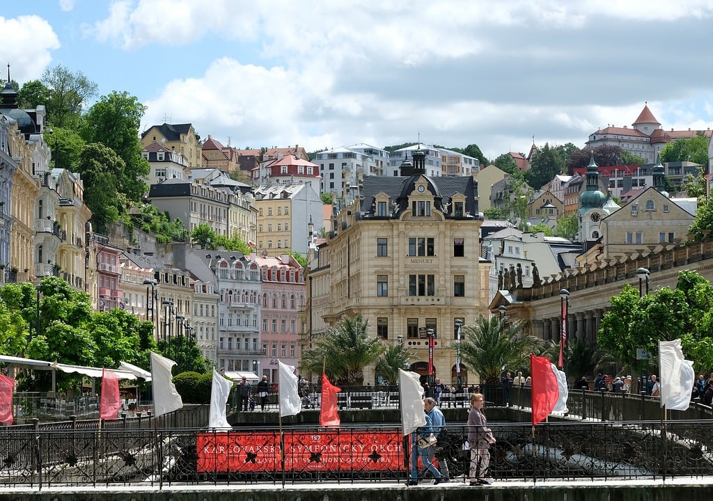 Teplá River Promenade: Lined with pastel-colored buildings and chic cafés.