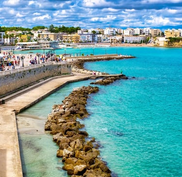 With its whitewashed lanes, crystal-clear waters, and ancient walls, Otranto is one of southern Italy’s most captivating seaside towns. The charm of its historic center, the vibrant harbor cafés, and the proximity to untouched beaches make it a gem of Puglia’s coastline. Whether you’re admiring the cathedral’s mosaics, diving into turquoise bays, or dining al fresco on fresh seafood and wine, Otranto promises an unforgettable blend of culture, color, and coastal serenity.