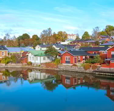 Porvoo is a picturesque riverside town located on the southern coast of Finland, about 50 km east of Helsinki. Set along the Porvoonjoki River, it is one of Finland’s six medieval towns, known for its historic charm, cobbled streets, and brightly painted wooden houses overlooking the water.