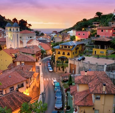 Ribadesella is a charming coastal town located in the Asturias region of northern Spain, along the Cantabrian Sea. It lies about 85 km east of Oviedo and 70 km from Santander, nestled between the ocean and the lush Picos de Europa mountains.