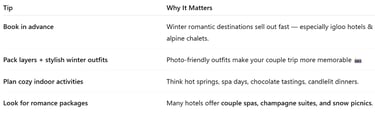 Travel Tips for a Perfect Romantic Winter Getaway