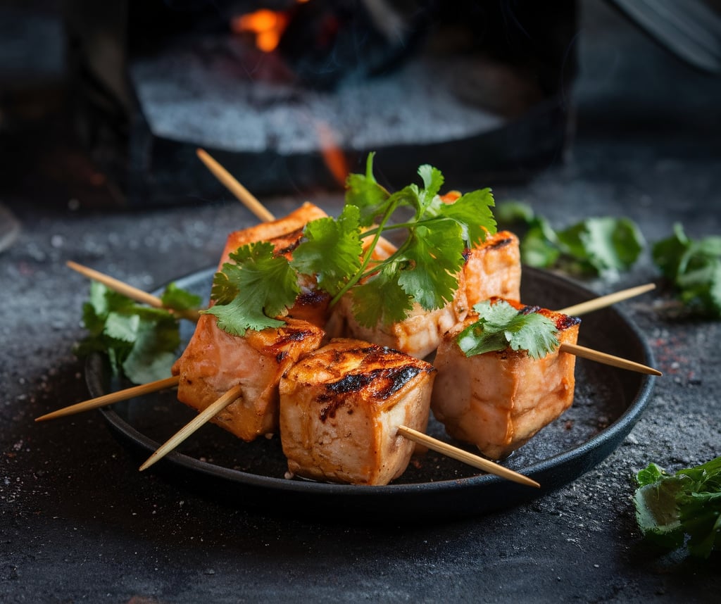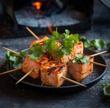 Sweet Chili Glazed Salmon Skewers (Light, Modern Bar Bite)